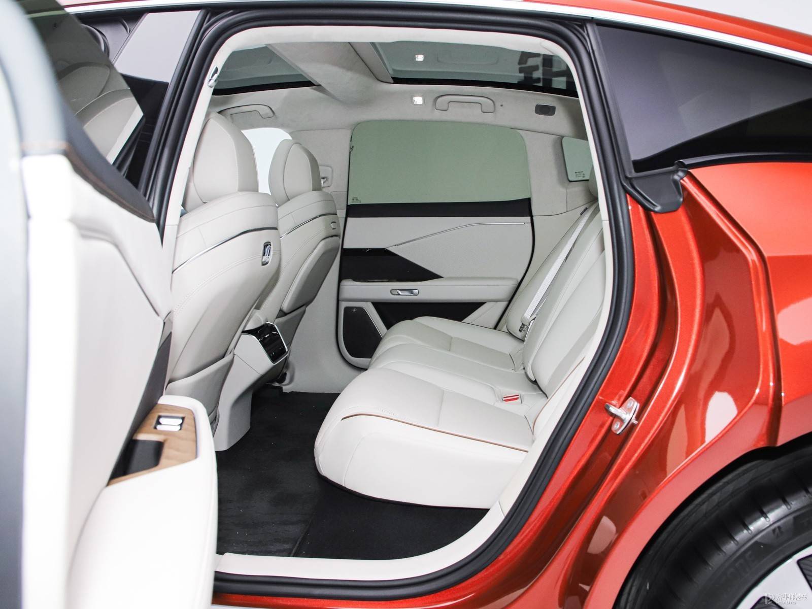 车身侧面非常修长,并采用双拼色设计,颇有行政旗舰轿车风格,而溜背式设计也彰显出十足的运动感,同时,新车还配备半隐藏式门把手和21英寸十辐式轮毂,轮胎规格为255/40 R21。车尾造型圆润,形态与保时捷Panamera相似,后轮拱宽体感十足。